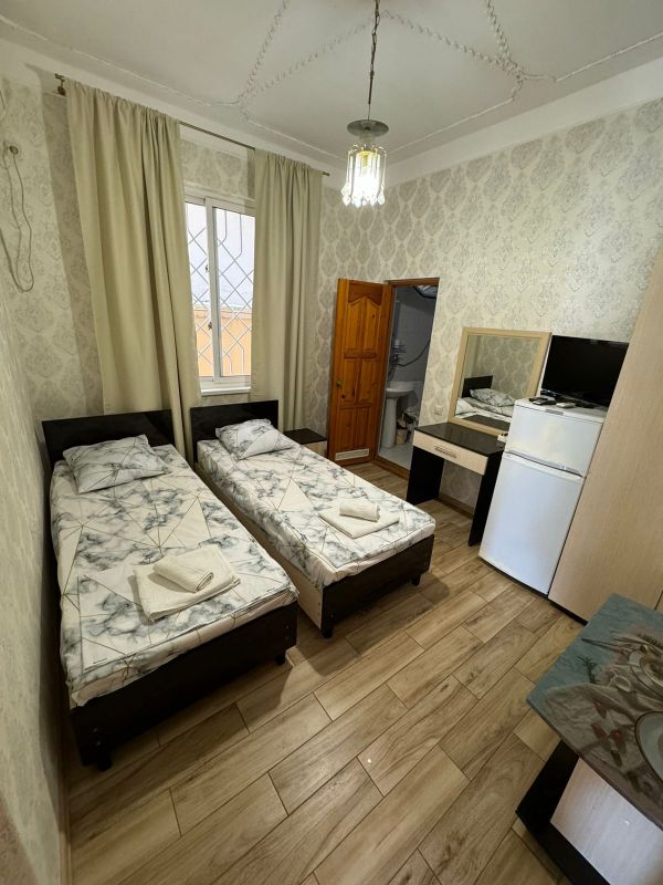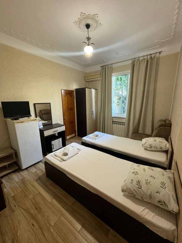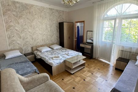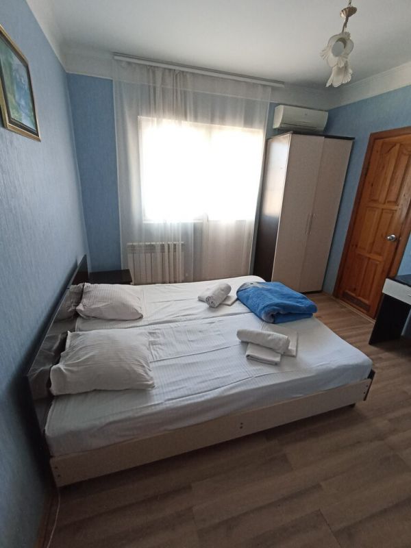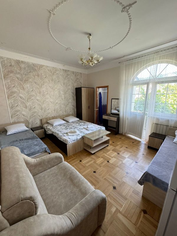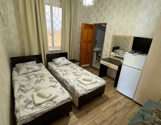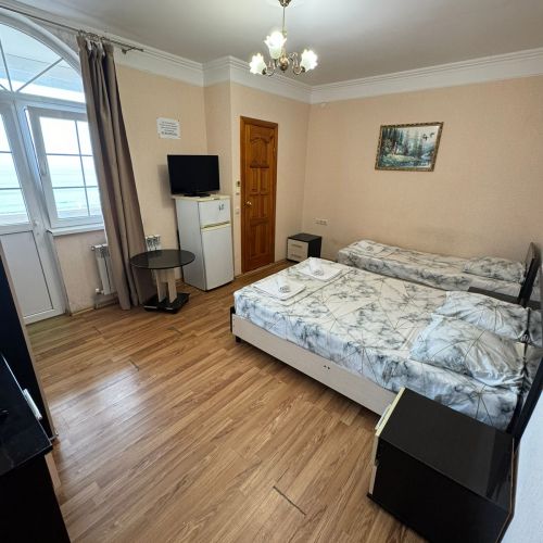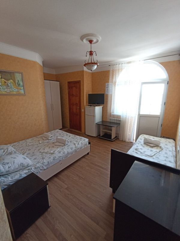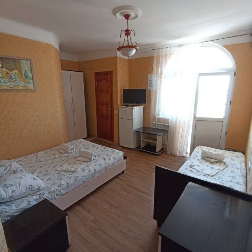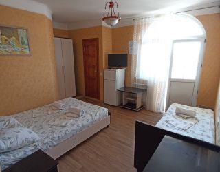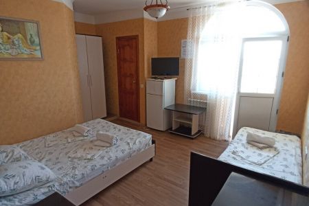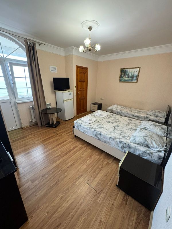 Пятиэтажный корпус гостевой дома расположен на первой береговой линии. В распоряжении гостей комфортабельные номера разных категорий: есть как апартаменты с кухней, так и небольшие стандартные номера. В каждом номере имеется персональный санузел, есть кондиционер, мини-холодильник, телевизор, сеть wi-fi. На территории оборудована общая гостевая кухня, есть зона отдыха с навесом и крытая беседка, в общем доступе также гладильные принадлежности и стиральная машина.
